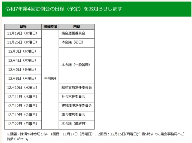 令和7年(2025年)狛江市議会第4回定例会が開催されます。